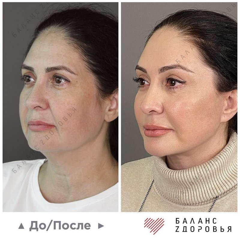 Провели с врачом угольчатый рф лифтинг шея и низ лица. Процедура была достаточно комфортная. Реабилитация была быстрая. Для закрепления эффекта от аппаратных процедур проводим инъекционные.